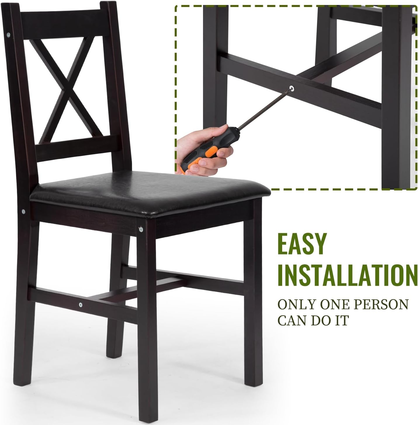 FDW | 3-Piece Solid Wood Dining Table | Dark Brown | Pine Kitchen Table with Upholstered Chairs | Space-Saving Design | Smooth Easy-to-Clean Surface | for Dining Room, Apartment, Restaurant