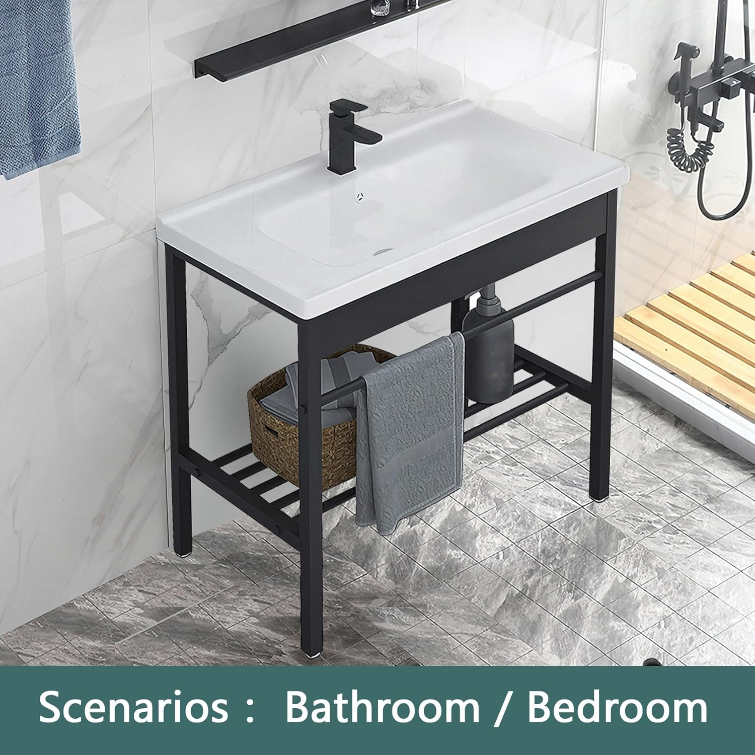 Freestanding Bathroom Console Sink, Bathroom Vanity with Sink, 28.3" x 19" x 32.3" Ceramic Console Sink Set With Bracket, Utility Sink for Laundry Room, Washing Room, Garage, Basement, Outdoor, Indoor