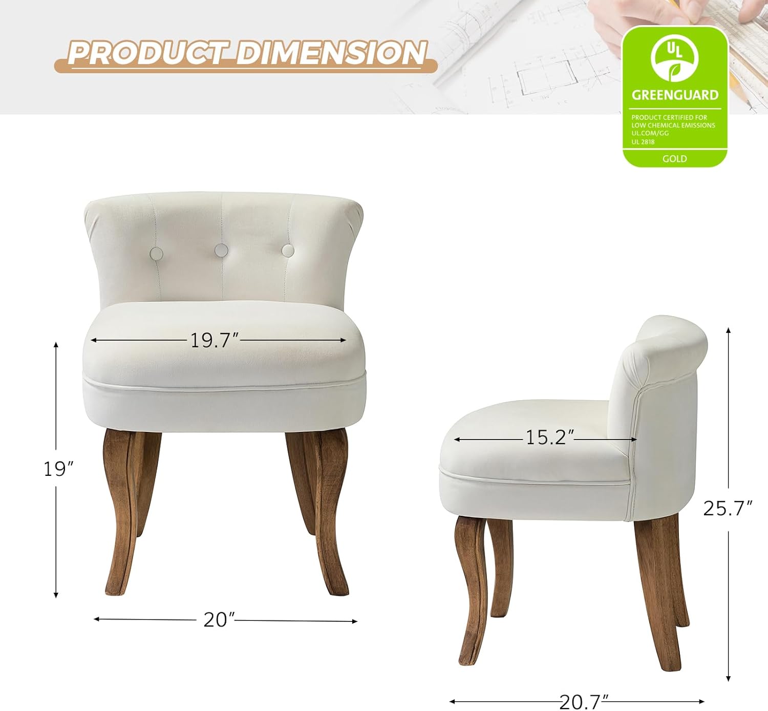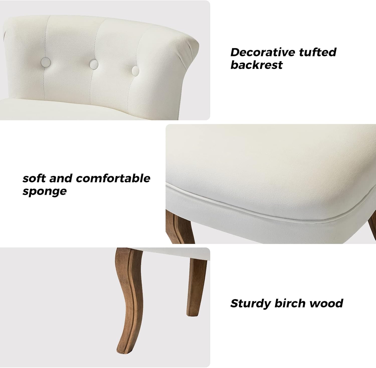 HULALA HOME Velvet Vanity Stool with Low Back, Modern Vanity Chair with Solid Wood Legs, Small Upholstered Makeup Chair Home Decor for Bedroom Living Room Dressing Table, Women Girls, Ivory