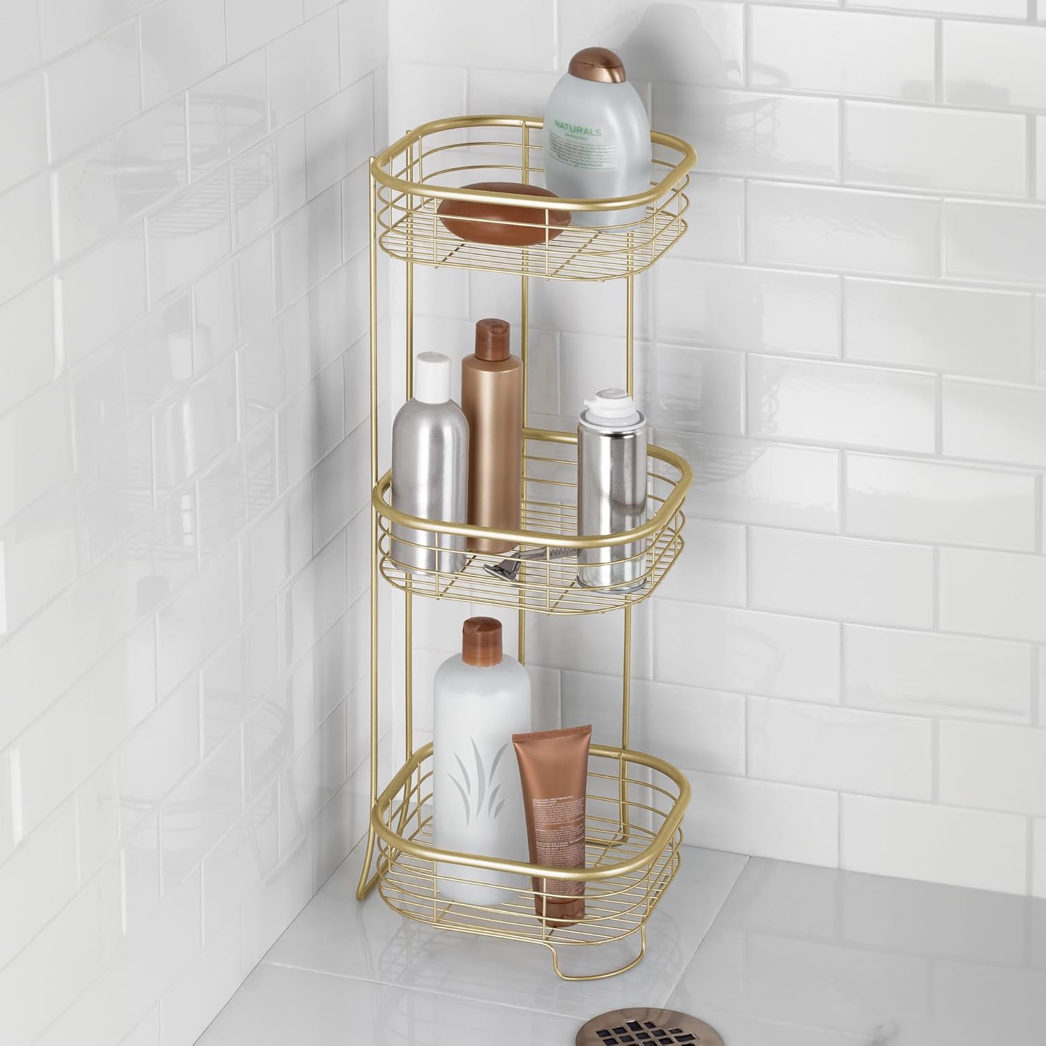 iDesign 3-Tier Bathroom Freestanding Square Shower Caddy Organizer - Gold