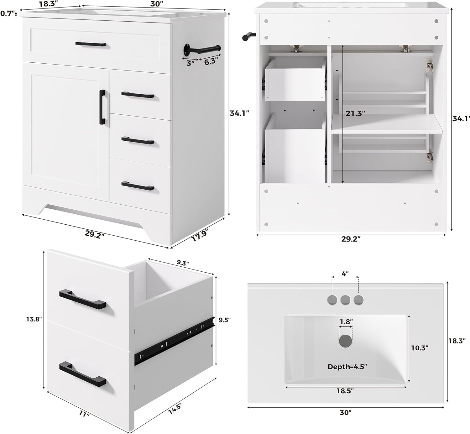 IRONCK 30" Bathroom Vanity with Ceramic Sink