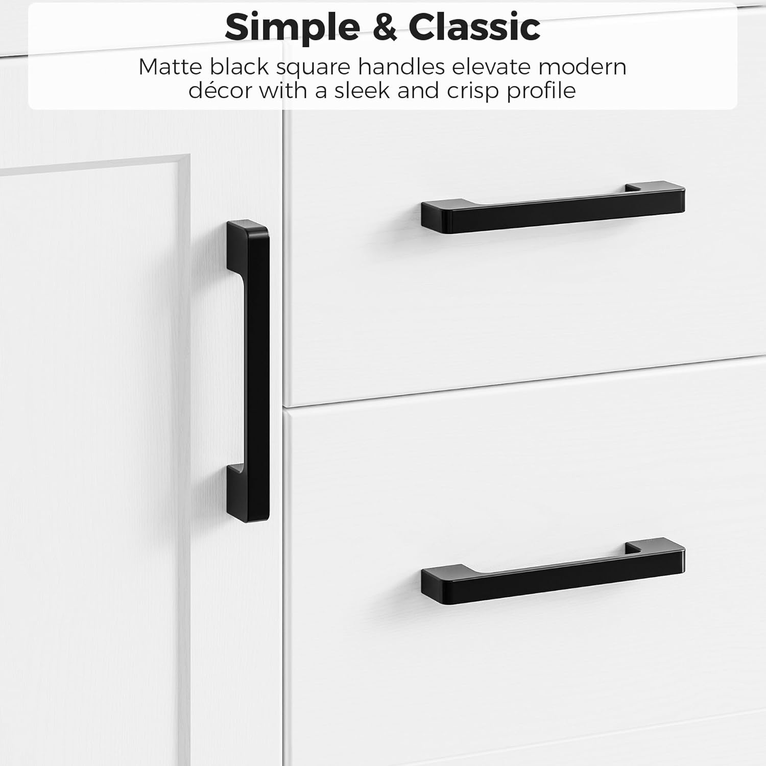 Matte black square handles elevate modern décor with a sleek and crisp profile.