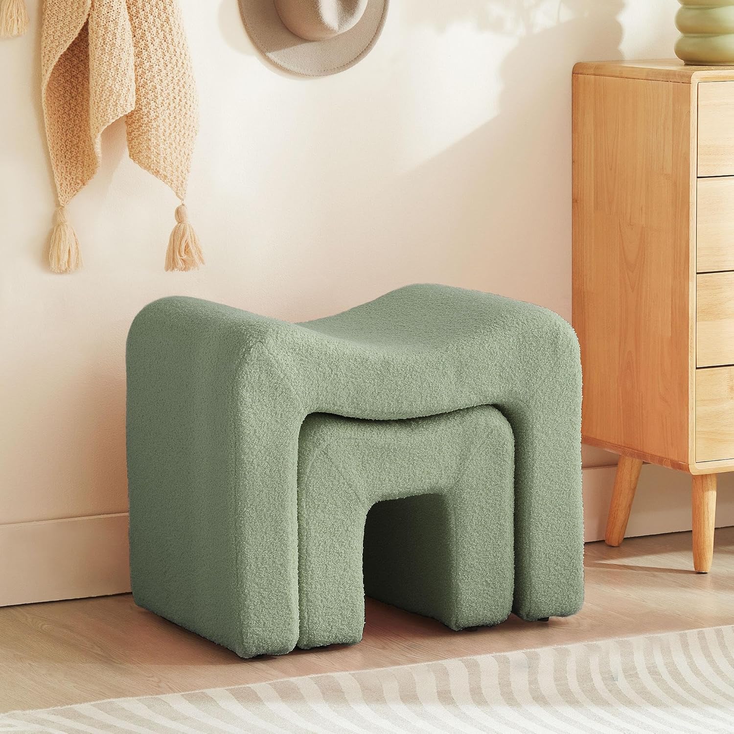 Small Footstool Ottoman Vanity Stool Chair Seating Backless Modern Foot Rest Teddy Velvet Ottoman for Makeup Room Living Room Bedroom Entryway,White (Single 1)