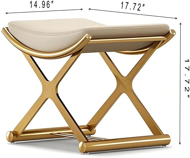 Vanity Stool Chair for Makeup - Small Backless Leather Stool for Vanity - Modern Ottoman Bench Seat with Metal X Legs, Footstool for Bathroom & Living Room - Gold