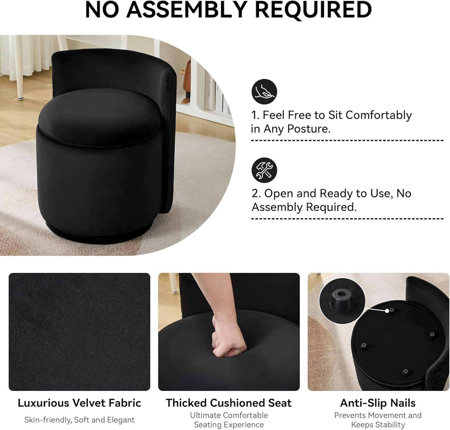Whether you're sitting down for makeup or relaxing with a book, it offers steady, reliable support every time.