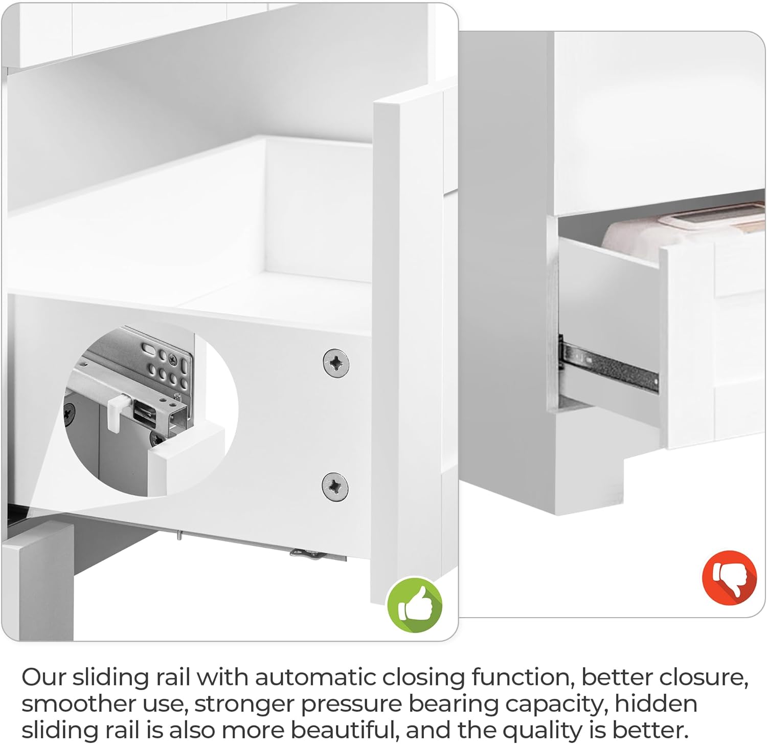 The ample space under the sink cabinet offers convenience for installing pipes. You can store items like towels, toilet paper, and soap in the bottom drawer